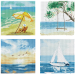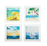 - Includes four mini summer-themed artworks: beach chair, tree swing, sunset and sailboat (each design size is 5" x 5")