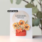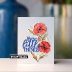 These pretty flowers, leaves, grid background and sentiment will make some beautiful cards! This package contains 8 clear stamps on a 5" x 6.5" backing sheet. The largest image measures approximately 2.9" x 4" and the smallest measures approximately 0.2" x 1.1". Don't forget the coordinating die set, Penny Black's Poppies Metal Dies Set #51-873, sold separately!